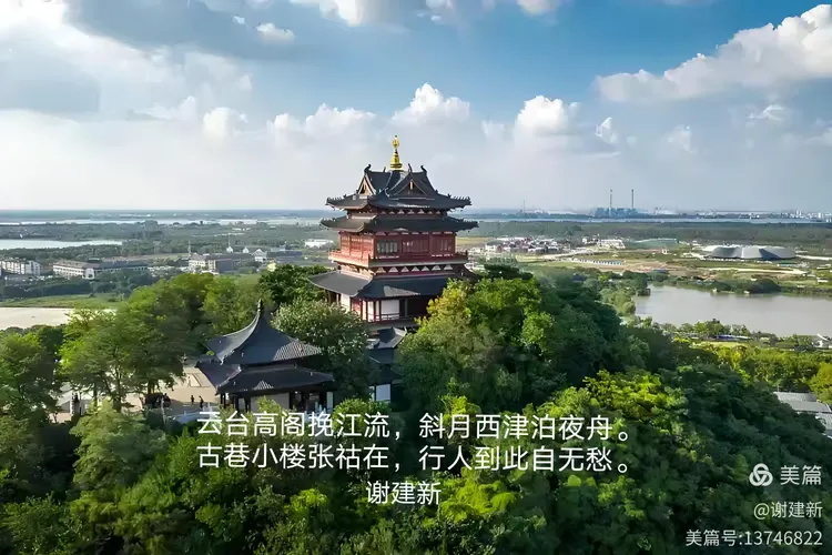 云台高阁挽江流, 斜月西津晚泊舟。 古巷小楼张祜夜, 行人到此自无愁。