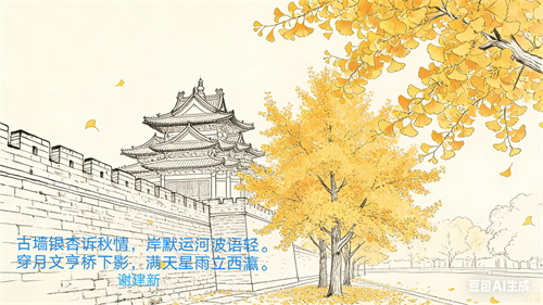 第一句:古墙银杏诉秋情